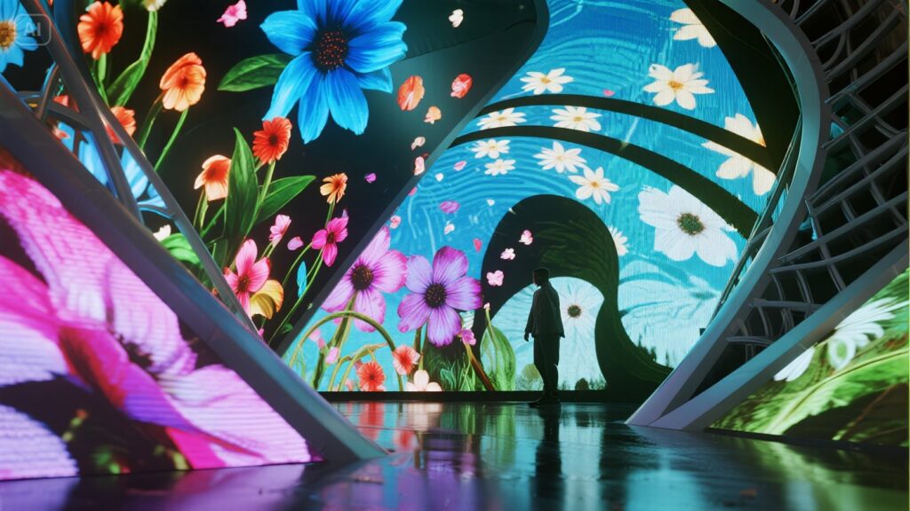 The new generation of immersive solutions ensures an all-angle immersive experience. With the continuous development of technology, the application of LED immersive CAVE in urban exhibition halls is also constantly upgrading and improving. For example, combining naked-eye 3D and AR technology can bring more shocking and realistic visual experiences to the audience; at the same time, using intelligent interaction technology can also realize the interaction between the audience and the displayed content, improving the audience’s participation and experience. In cultural and tourism interactions, the application of LED immersive CAVE can present various cultural attractions, historical scenes, folk customs, etc., making tourists feel as if they are in the long river of history or exotic customs. The LED immersive CAVE application in virtual shooting has brought revolutionary changes to the fields of film and television production, advertising shooting, etc. It not only improves the efficiency and accuracy of shooting but also reduces the shooting cost, providing creators with more creative space and possibilities.